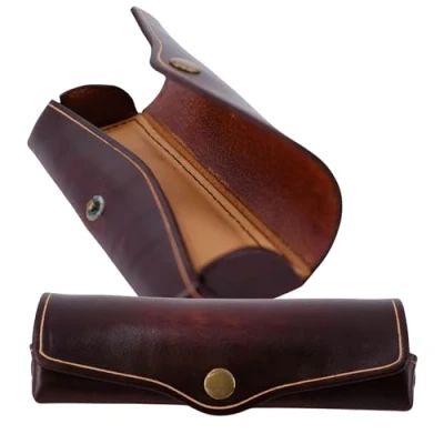 The large brown leather case for glasses and visual aids of all types by Mika is made of the finest genuine leather / saddle leather and impresses with its durability, strong colour and purity. The glasses storage is equipped with a push button for opening and closing and a decorative notch, and is equipped with the compact outer dimensions of approx. 16 x 8 x 3 cm for a constant companion in everyday life. The glasses case is slim and comparable to a hard case case, suitable for reading glasses, sunglasses, wide sight, short-sightedness and gliding vision glasses, as well as sports glasses and children's glasses. Mika glasses case for men and women in the highest quality leather, outer dimensions: approx. 16 x 8 x 3 cm, weight: approx. 120 g, material: saddle leather, colour: brown, item no. : 28063102, EAN: 4260308921261. International products have separate terms, are sold from abroad and may differ from local products, including fit, age ratings, and language of product, labeling or instructions.