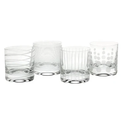 Mikasa Cheers Set Of 4 12.75oz Tumblers a unique, precision-etched set of designs in a sophisticated and coordinating collection. Each glass hosts a heavy base and a distinctive pattern so family, friends and guests can identify their drinks easily. Capacity: 377ml. Dimensions: 8.9cm x 8.9cm x 9.5cm .