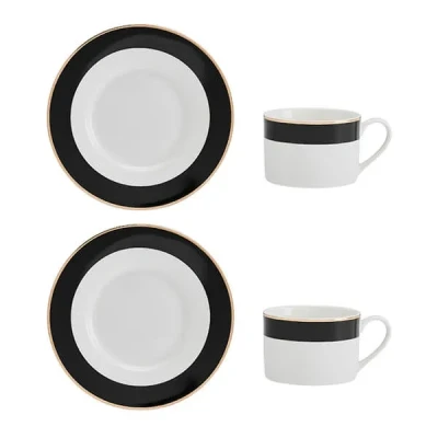 Elevate the sophistication of your next dinner party with the Mikasa Luxe Deco Set of 2 Teacups and Saucers. This set is perfect for two and includes two 200ml capacity teacups and matching saucers. Inspired by the glamorous '20s, this set features a bold monochrome band, which is beautifully accented with authentic gold detailing for a touch of luxury.Made from high-quality fine china, this tea set is perfect for special occasions and afternoon teas, guaranteed to impress your guests with its elegant design. Moreover, it is super easy to clean as it is dishwasher safe.The teacups measure W8.5cm (11.4cm including handle) x H5.7cm, while the saucers have a diameter of 15.8cm.Additionally, for your peace of mind, Mikasa Luxe Deco China Set of 2 Teacups and Saucers comes with a 2 year manufacturer's guarantee.