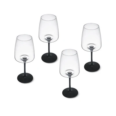 Elevate your wine experience with the Mikasa Palermo Set of 4 Red Wine Glasses. Inspired by the elegant charm of Sicily’s Palermo, each glass is crafted from pure lead-free crystal for brilliant clarity and a refined finish. The generous 450ml capacity allows your wine to breathe, releasing its full bouquet and flavour.A striking feature of this collection is the contrasting matte black stems and bases, bringing a modern, dramatic twist to a timeless silhouette. The gently curved bowl is perfect for enjoying your favourite Merlot, Cabernet Sauvignon, or Shiraz.Dishwasher safe for easy cleaning, these glasses are as practical as they are stylish. Coordinate with the rest of the Mikasa Palermo collection (available separately), including white wine glasses, Champagne flutes, and stemless designs, for a perfectly matched table setting.Dimensions: 8.8cm (L) x 8.8cm (W) x 22cm (H). Capacity: 450ml. Weight: 0.15kg.Supplied with a manufacturer's 10-year guarantee.