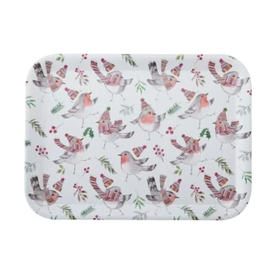 MULTI USE: At 43.5 x 32cm, this tray is ideal for serving drinks, snacks, breakfast, or party food. Both stylish and practical, it’s perfect for festive entertaining. DURABLE & STRONG: Made from sturdy, virtually unbreakable melamine, ideal for everyday use in the Christmas period or entertaining with your loved ones. FESTIVE ILLUSTRATIONS: Features delightful, hand-drawn robin illustrations by UK based artists TipperleyHill, adding festive warmth and charm to your kitchen. VERY GIFTABLE: A thoughtful and festive gift for kitchen lovers or hosts during the holidays. QUALITY GUARANTEED: Covered by a 2-year guarantee for piece of mind. COMPLETE THE COLLECTION: Explore the complete beautiful collection of Mikasa's TipperleyHill products including mugs and cake tins.