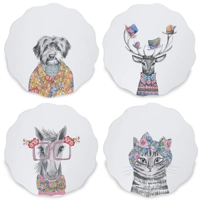 WHAT YOU'LL GET: a set of 4 cork-backed placemats from the exclusive Mikasa x Tipperleyhill collection STATEMENT TABLEWARE: add a quirky touch to your table setup with this animal-print placemat set UNIQUE BRITISH DESIGN: scallop shaped and decorated with original illustrations hand-drawn by UK-based artist duo Tipperleyhill EVERYDAY USE: heat resistant to 120°C; wipe clean for pristine results after every use. Includes a 12-month guarantee PERFECT FOR GIFTING: discover the entire Tipperleyhill collection for stylish presents for quirky print lovers