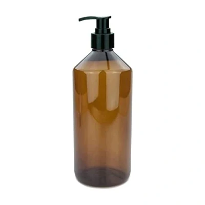 Refillable brown PET bottle 1000 ml with dosing pump, food-safe, BPA-free Pump bottle (2 ml per stroke) for detergent, shampoo, cream, syrup, etc. Brown pump dispenser made of sturdy plastic for 1 litre - protects the contents from UV rays Height: 22 cm, diameter: 8.8 cm, opening: diameter 2.1 cm Dosing dispenser including label for labelling and sticking, Manufacturer: mikken