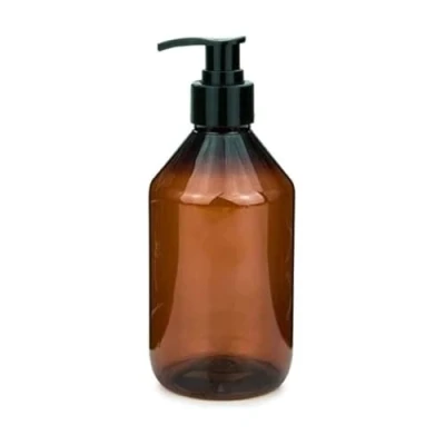 Refillable brown PET bottle 250 ml with dosing pump, food-safe, BPA-free Pump bottle (2 ml per stroke) for detergent, shampoo, cream, syrup etc. Brown pump dispenser 0.25 litres - protects the contents from UV rays Height: 13.1 cm, diameter: 6.3 cm, opening: diameter 2.19 cm Laboratory bottle with pump dispenser, includes label for labelling and sticking, Manufacturer: mikken