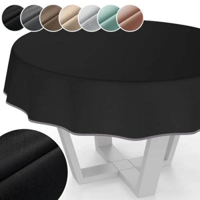Mila Tablecloth Washable Fabric Jacquard Teflon Coated Easy Care Lotus Effect Dirt and Water Repellent Plain Linen Look Round 140 cm with Hem (Edged) Anthracite