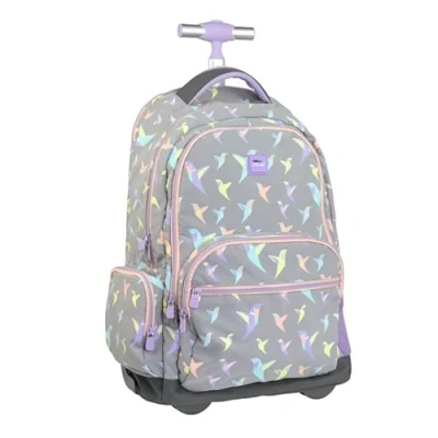 MILAN 625601SCL Backpack with Wheels 6 Zippers (25 L) Sugar Hummingbird Pastel, Grey and Pink