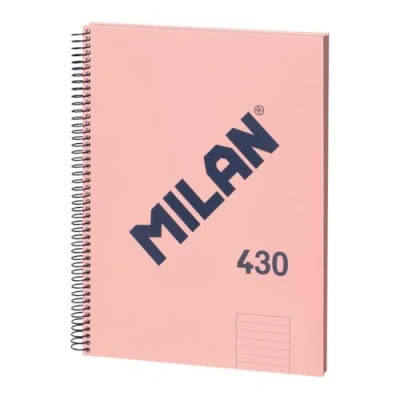 A4 Wirebound Hardback Notebook 80 sheets, lined paper (7mm single line). High quality 95 g/m² paper, micro-punched and 4 hole punched. Cutting starter for easy separation of each blade. Rigid cardboard cover and embossed glossy MILAN logo. Flexible spiral with safety lock prevents snags and scratches on furniture. Notebook in pink. Series 1918 inspired by the original colors and design of MILAN erasers, made in Spain since 1918