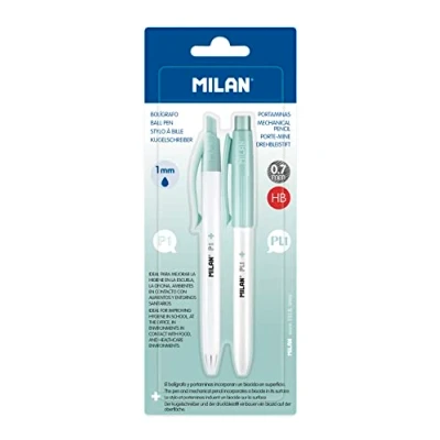 MILAN Blister Pack of 1 Blue Pen and Mechanical Pencil 0.5 mm Capsule Silver