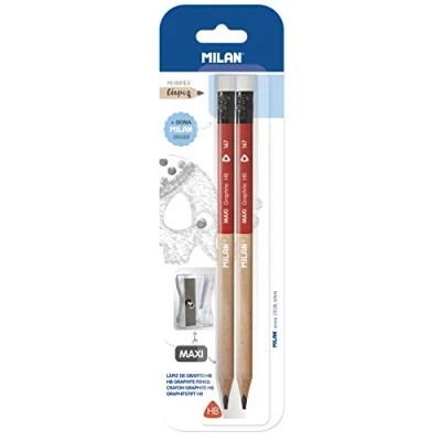 MILAN® Blister 2 pens p1 (blue/red), pencils graphite HB and h, 430 rubber sharpener
