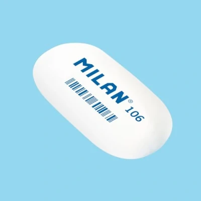 Soft rubber synthetic rubber type oval bread crumb. For erasing a wide range of graphite pencils on all kinds of papers. Colour: white. MILAN erasers are made in Spain since 1918.