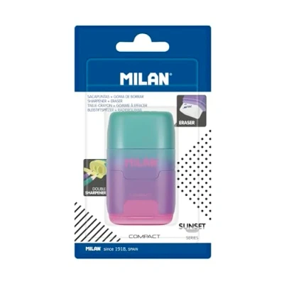 Combination of an eraser and a double sharpener (one standard and another MAXI) with reservoir. Compact Sunset Edition Design Synthetic Rubber Square Eraser The sharpener has a sharp and durable steel blade, ideal for all types of pencils. With safety blade: this system prevents the blade from the body of the sharpener Colours: turquoise, lilac and pink. Original design created by the R&D department of MILAN Replacement erasers available for sale (model 430)., Weight: 0.110231131 pounds, Manufacturer: MARCO DACHS, S.A.