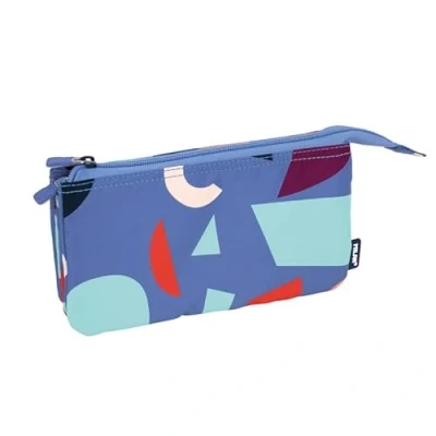 Pencil case with 2 zips and 5 compartments. The outer zip makes it easy to access 4 inner pockets and a central zip to store everything in its compartment. Fun Animals series, in shades of blue and turquoise green. A collection with The Fun color palette and various shapes of a collage. Fabric composition: outer and polyester inner lining. Dimensions: 22 x 12 x 4 cm.