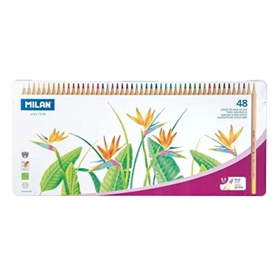 MILAN® Metal box 48 coloured pencils thick lead Ø 3.5 mm hexagonal