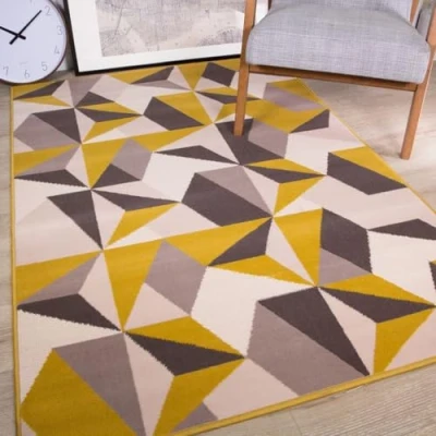 Milan Ochre Mustard Yellow Grey Beige Geometric Kaleidoscope Traditional Living Room Rug
