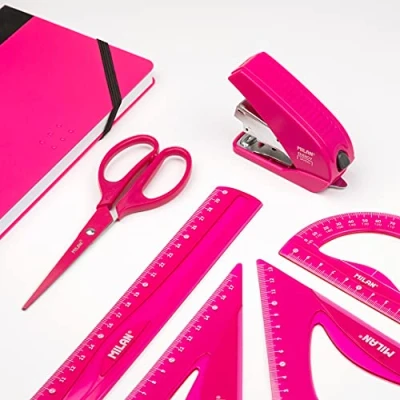 MILAN® Pack Rules Technical Drawing, Stapler, Office Scissors and Notebook, Acid Series Pink