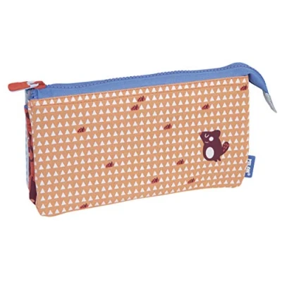 Special edition & lit, coral color Pencil case with 5 compartments Composition: cotton outer and polyester inner lining