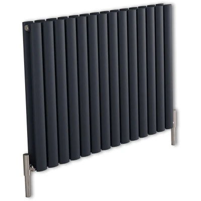Milano Aruba Ayre Anthracite Horizontal Double Oval Panel Aluminium Radiator 600mm x 830mm