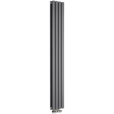Milano Aruba Flow Modern Anthracite Vertical Column Central Connection Double Oval Panel Radiator 1600mm x 236mm