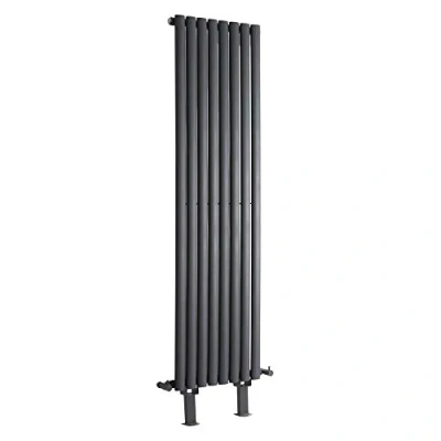 Milano Aruba Modern Anthracite Single Panel Vertical Oval Column Radiator with Feet 1600mm x 472mm