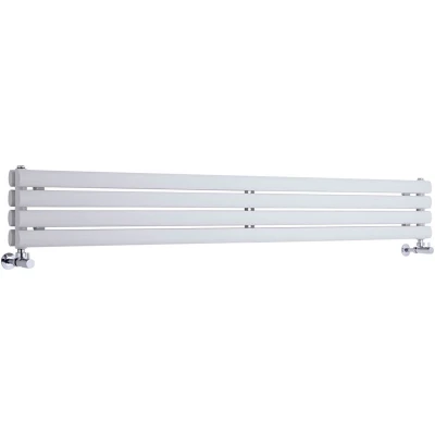General description Give your living space a feeling of warmth and comfort with the modern Milano Aruba double oval panel horizontal radiator. Benefitting from premium quality steel construction and accentuated by a hard-wearing white powder coated finish, the radiator produces a heat output that will create a cosy and inviting atmosphere that you’ll enjoy spending time in. Technical specifications Dimensions: 236mm x 1600mm x 78mm Heat output: 2214 BTUs / 649 Watts (T50); 1170 BTUs / 343 Watts (T30) Construction material: Steel Finish: White powder coated Tested and certified to BS EN 442 standard ISO9001:2015 registered manufacturer Includes blanking and bleed plug plus fixings Covered for 20 years Compatibility and accessories Radiator valves are required for installation. Installation Marked for vertical installation but includes extra horizontal mounting brackets. Not suitable for use with radiator feet.