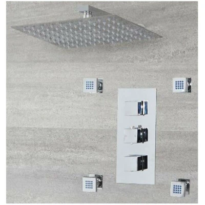 Milano Arvo Modern Thermostatic Mixer Valve Wall Mounted Square Shower Head Body Jets Chrome