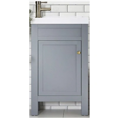 General description Enhance the traditional look of your cloakroom or en-suite with the freestanding Milano Aston vanity unit and basin. This classic vanity unit features a one tap-hole reversible premium quality ceramic basin and is constructed from engineered wood, finished in a light grey color. Technical specifications Material: FSC engineered wood Finish: Light grey (RAL 7046) Dimensions: 400mm x 222mm x 879mm Reversible ceramic basin with single tap-hole Integral cupboard with a fixed shelf Round aged gold zinc alloy handle Soft close door Installation Assembly required before installation Usage Requires a mono basin tap Requires slotted or universal waste Requires flexible bottle trap Other information Tested and certified to meet EN14749 and EN14688 standards This product is covered for 5 years