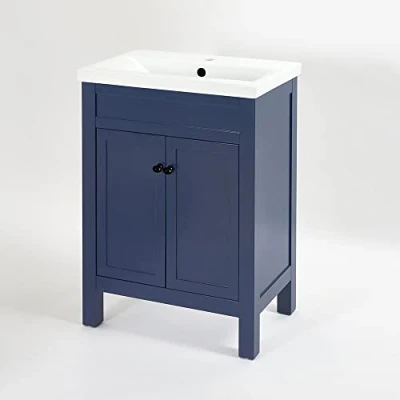 AmazonFSC engineered wood and ceramic construction Dimensions: 615mm x 400mm x 840mm Hard-wearing navy blue finish Includes vanity unit, basin and decorative handle You will need a mono basin tap, slotted or universal waste and flexible bottle trap Please note: Assembly is required before installation