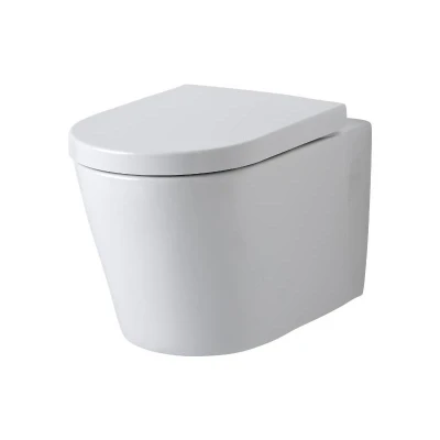 Milano Ballam Modern White Ceramic Wall Hung Rimless Toilet WC and Soft Close Seat