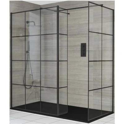 General description Make your bathroom feel modern and stylish with the Milano Barq corner walk-in shower enclosure, which consists of two black framed glass screens with support arms, a 300mm hinged return panel, and a low profile graphite slate effect tray. The enclosure features an attractive black grid pattern on the outside, ensuring a contemporary look. Technical specifications Dimensions of shower tray: 1800mm x 900mm x 30mm Height of enclosure panels: 1950mm Material: 8mm toughened safety glass and aluminium Manufactured to meet EN14428 standard Compatibility and accessories Reversible design allows for left or right hand entry Installation Designed for installation in the corner of a bathroom Usage Includes a fast flow waste to efficiently drain water after your shower Other information This product is covered for 10 years