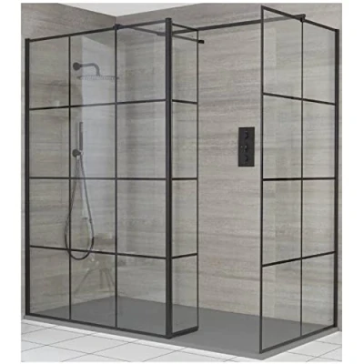 AmazonToughened glass and aluminium construction Includes 2x 900mm glass screens, return panel, 2x support arms and 1500mm x 900mm light grey tray Modern walk-in enclosure design Hard-wearing black grid finish Textured slate effect tray with fast flow waste Height of 1950mm to catch more splashes Please note: The shower tray should be cleaned after use to prevent marking, Weight: 245.264266475 pounds, Manufacturer: Milano