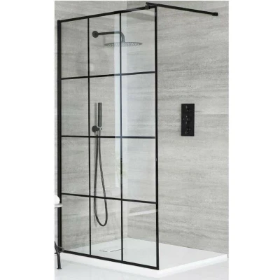 General description Enhance the contemporary look of your bathroom with the Milano Barq walk-in shower enclosure, which comprises a framed black grid pattern glass screen and a white slate effect shower tray. Boasting a reversible design to allow entry from the left or right, the enclosure will perfectly suit your installation needs and adds a modern aesthetic. Technical specifications Screen material: 8mm toughened safety glass Height of screen: 1950mm Shower tray dimensions: 800mm x 800mm x 30mm Construction: Aluminium Compatibility and accessories Reversible design for left or right hand entry Black support arm included Installation Shower tray can be fitted on or level with the floor Usage It is advised to remove shower gel or shampoo from the tray after showering to prevent any marking of the tray. Other information Manufactured to meet EN14428 standard This product is covered for 10 years