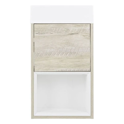 General description Introduce a stylish and practical space-saving solution to your small modern bathroom with the wall-mounted Milano Bexley cloakroom vanity unit. Finished in an eye-catching contemporary light oak woodgrain effect, the vanity unit features integral storage with a cupboard that has a push-to-open soft close door and an open shelf. An attractive ceramic basin completes the design, featuring a single tap-hole for use with a mono basin tap. Technical specifications Material: FSC engineered wood Finish: Light oak woodgrain effect Dimensions: 400mm x 220mm x 680mm Type: Wall hung design Basin: Ceramic with hard-wearing white coating Door: Soft close Standards: Tested and certified to meet EN14749 and EN14688 Warranty: Covered for 5 years Compatibility and accessories Requires a mono basin tap Unsplotted or universal waste needed Flexible bottle trap recommended Installation Supplied ready assembled for easy installation