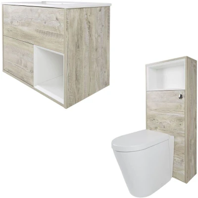 Milano Bexley Light Oak 610mm Bathroom Vanity Unit with Basin, Toilet WC and Back to Wall Pan