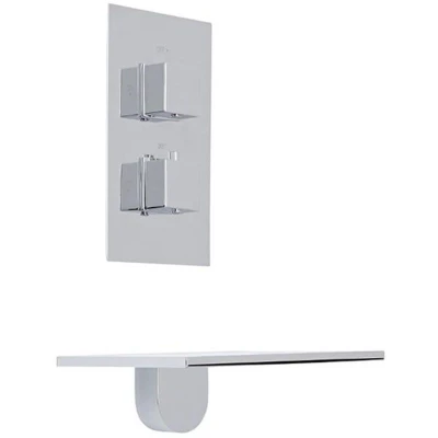 AmazonWall-mounted slimline blade design bath filler and concealed twin thermostatic control valve Solid brass and stainless steel construction with chrome finish and ceramic disc technology to prevent leaks and drips Offers thermostatic control of the water flow and temperature using the ergonomic square handles Delivers waterfall effect output for a spa-like experience Compatible with all types of plumbing system