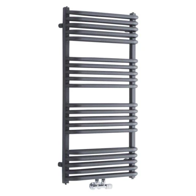General description Keep your towels tidy and perfectly warmed with the modern Milano Bow heated towel rail. Featuring a stylish D-shaped bar design, this towel rail is constructed from premium quality steel and finished with a contemporary anthracite powder coating. With its impressive heat output, your towels will always feel cozy and ready for use. Technical specifications Dimensions: 1000mm x 500mm x 122mm Heat output: 2687 BTUs / 788 Watts (T50); 1433 BTUs / 420 Watts (T30) Construction material: Steel Finish: Anthracite powder coated Tested and certified to BS EN 442 standard ISO9001:2015 registered manufacturer Compatibility and accessories Includes blanking and bleed plug plus fixings Radiator valves are required (not included) Other information This product is covered for 10 years