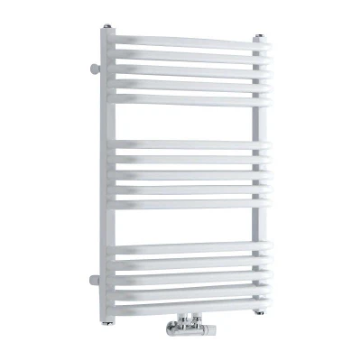 General description Keep your towels tidy and perfectly warmed with the modern Milano Bow heated towel rail featuring middle connection valve inlets. This towel rail boasts an attractive D-shaped bar design, made from premium quality steel and finished with a contemporary white powder coating. With its impressive heat output, your towels will always feel cozy and ready for use. Technical specifications Dimensions: 736mm x 500mm x 122mm Heat output: 2016 BTUs / 591 Watts (T50); 1079 BTUs / 316 Watts (T30) Construction material: Steel Finish: White powder coated Tested and certified to BS EN 442 standard ISO9001:2015 registered manufacturer Compatibility and accessories Includes blanking and bleed plug plus fixings Radiator valves are required (not included) Other information This product is covered for 10 years