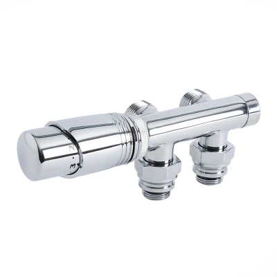 Milano Chrome 3/4" Male Thread H Block Angled Valve TRV Thermostatic Radiator 15mm Adapters