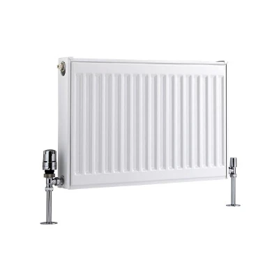 General description Featuring an impressive heat output, the Type 11 Milano Compact 400mm x 600mm single panel convector radiator will effortlessly create a warm and inviting atmosphere in your living space. Benefitting from strong and durable premium quality steel construction, the radiator is accentuated by a hard-wearing white powder coated finish that will blend in with any décor perfectly. Technical specifications Type: Single panel convector radiator Material: Steel Finish: White powder coated Dimensions: 400mm x 600mm x 50mm Heat output: 1248 BTU’s / 366 Watts (T50); 646 BTU’s / 189 Watts (T30) Standards: Certified and tested to EN442 Manufacturer: ISO9001:2015 registered Warranty: Covered for 10 years Compatibility and accessories Radiator valves are required (not included)