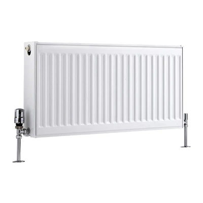 General description Featuring an impressive heat output, the Type 22 Milano Compact 400mm x 800mm double panel convector radiator will effortlessly create a warm and inviting atmosphere in your living space. Benefitting from strong and durable premium quality steel construction, the radiator is accentuated by a hard-wearing white powder coated finish that will blend in with any décor perfectly. Technical specifications Type: Double panel convector radiator Material: Steel Finish: White powder coated Dimensions: 400mm x 800mm x 103mm Heat output: 3155 BTU’s / 925 Watts (T50); 1624 BTU’s / 476 Watts (T30) Standards: Certified and tested to EN442 Manufacturer: ISO9001:2015 registered Warranty: Covered for 10 years Compatibility and accessories Radiator valves are required (not included)