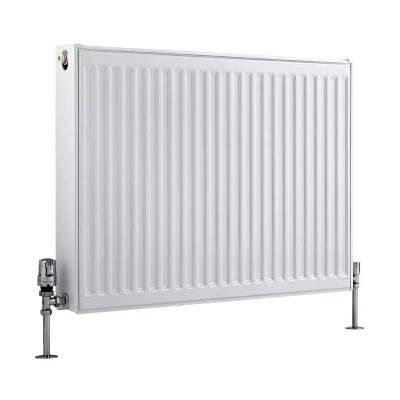 General description Featuring an impressive heat output, the Type 22 Milano Compact 600mm x 800mm double panel convector radiator will effortlessly create a warm and inviting atmosphere in your living space. Benefitting from strong and durable premium quality steel construction, the radiator is accentuated by a hard-wearing white powder coated finish that will blend in with any décor perfectly. Technical specifications Type: Double panel convector radiator Material: Steel Finish: White powder coated Dimensions: 600mm x 800mm x 103mm Heat output: 4541 BTU’s / 1331 Watts (T50); 2318 BTU’s / 679 Watts (T30) Standards: Certified and tested to EN442 Manufacturer: ISO9001:2015 registered Warranty: Covered for 10 years Compatibility and accessories Radiator valves are required (not included)