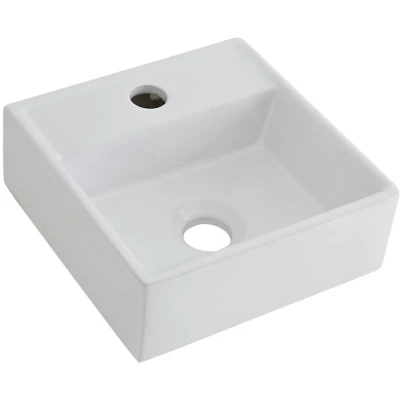 AmazonSingle tap-hole square bathroom basin which is suitable for countertop or wall mounting installation Ceramic construction with hard-wearing white finish Dimensions: 280mm x 280mm x 100mm Supplied with a wall fixing kit You will need a mono basin tap, unslotted or universal waste and bottle trap