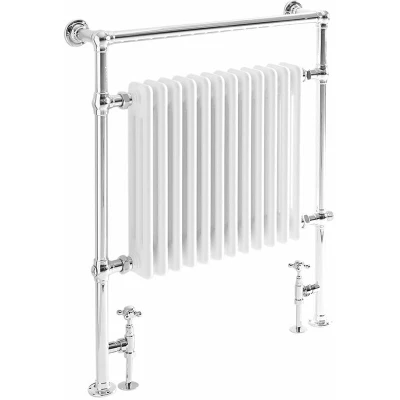 General description Ensure that your towels are always heated to perfection and ready to use with the traditionally designed floorstanding Milano Elizabeth dual fuel heated towel rail, which boasts a classic look with a white cast iron style insert. Benefitting from premium quality steel construction and accentuated by a chrome finish, the towel rail offers dual fuel functioning, meaning that it can be run as part of a central heating system or electrically using the included 800W Rotfil heating element. Thanks to the impressive heat output, you can be sure that your living space will enjoy a warm and inviting atmosphere. A pair of chrome angled radiator valves are included to complete the timeless aesthetic. Technical specifications Dimensions: 930mm x 790mm x 155mm Heat output: 2543 BTUs / 745 Watts (T50); 1338 BTUs / 392 Watts (T30) Heating element: 800W Rotfil Construction: Steel with chrome finish Valves: Chrome angled valves included Fixings: Includes the fixings needed for