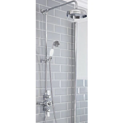 Milano Elizabeth Grand Rigid Riser Exposed Thermostatic Mixer Valve Hand Shower Head Chrome White