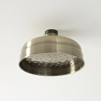 General description The 155mm Milano Elizabeth round fixed shower head is an ideal choice for adding a touch of traditional style to your bathroom, enhancing its elegance. With a moisture blemish resistant brushed gold finish, this premium quality solid brass shower head provides a luxurious rainfall effect water coverage for a relaxing shower experience. Technical specifications Material: Solid brass Finish: Brushed gold Dimensions: 155mm x 105mm Inlet connection: 1/2” Minimum recommended pressure: 1.0 bar Compatibility and accessories Compatible with domestic and commercial plumbing systems Requires a shower arm (not included) Other information This product is covered for 10 years The hand-finished nature of this item means that the color and tone can vary slightly between products, creating a unique and authentic look.
