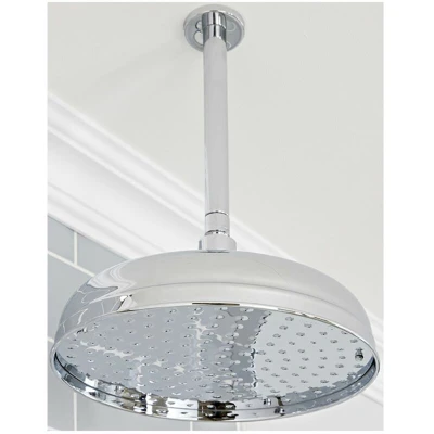 Milano Elizabeth Traditional 300mm Chrome Round Apron Rainfall Shower Head with Ceiling Mounted Arm