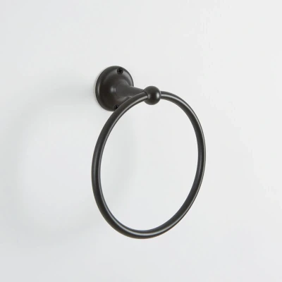 Milano Elizabeth Traditional Bathroom Wall Mounted Round Towel Ring Holder Black