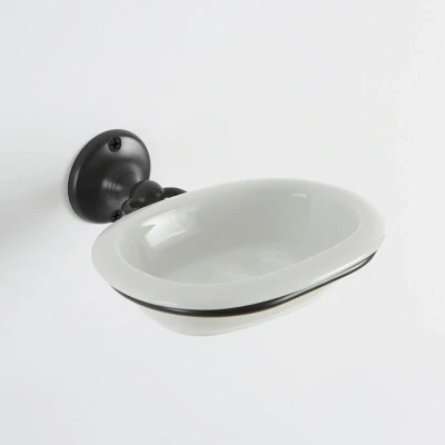 Milano Elizabeth Traditional Bathroom Wall Mounted White Ceramic Soap Dish and Black Holder