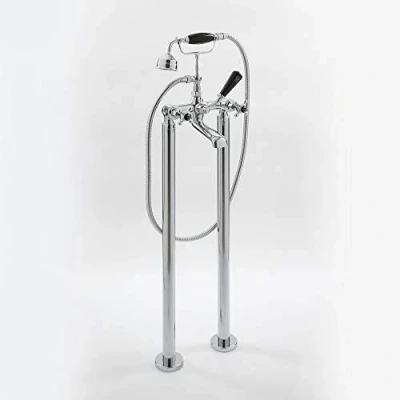 AmazonFreestanding bath shower mixer tap with crosshead handles and black detailed ceramic indices plus telephone-style hand shower kit Lead-free solid brass construction with chrome finish and ceramic disc technology to prevent leaks and drips Independent hot and cold water control with lever handle diverter to switch between outlets Compatible with all types of plumbing system Includes tap and hand shower kit - bath waste not included, Weight: 14.4182319348 pounds, Manufacturer: Milano