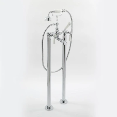General description Benefitting from a chrome finish, the Milano Elizabeth freestanding bath shower mixer tap will give your bathroom a classic style that will make it stand out. The traditional design features crosshead handles with white ceramic indices for easy control of hot and cold water, while the integral hand shower elevates your bathing experience to a more luxurious level. Technical specifications Material: Lead-free solid brass Finish: Chrome and white Recommended minimum pressure: 1.0 bar Includes: Telephone style hand shower and hose Type: Freestanding bath shower mixer tap Durability: Long-lasting due to solid brass construction Compatibility and accessories Suitable for use with all types of freestanding baths Compatible with all types of plumbing systems Note: A waste is required (not included) Usage Diverter to switch between hand shower and tap Integral ceramic disc technology for drip-free use Other information This product is covered for 10 years