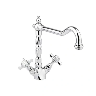 Milano Elizabeth Traditional French Classic Kitchen Sink Mixer Tap with Crosshead Handles Chrome